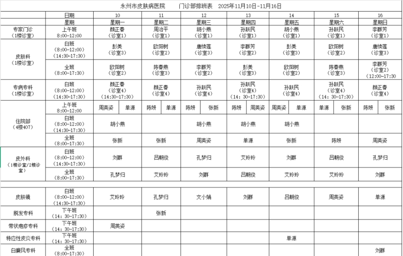 门诊:上午班:8:00-12:00     白班8:00-12:00   14:30-17:30