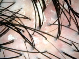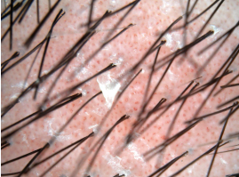 2.皮损处毛发由于厚积的鳞屑紧缩而成束状即束状发,但毛发正常,无折断,无脱落。