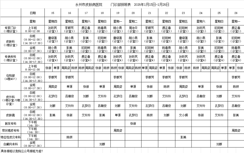 【皮防医讯】2026年1月15日-1月26日