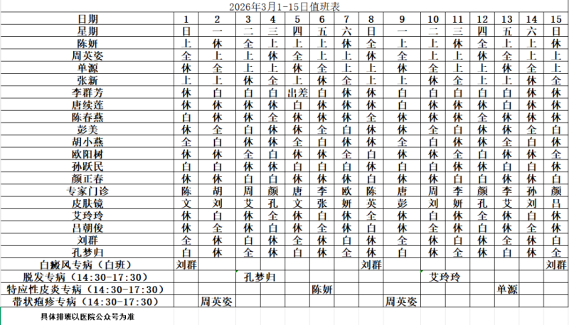 门诊:上午班:8:00-12:00 白班8:00-12:00 14:30-17:30