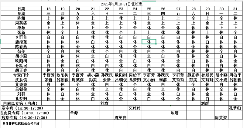【皮防医讯】2026年3月18日-3月31日