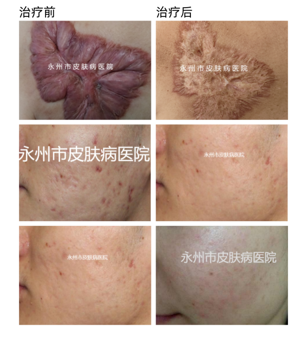 2、增生性瘢痕:好发于下颚、前胸、后背,形态多样,是由于周围结缔组织的增生引起,常见烧烫伤瘢痕增生、剖腹产瘢痕等各类手术瘢痕增生主要表现:突出表面,明显高于周围正常皮肤,外形不规则,高低不平,潮红不平,潮红充血,局部增厚变硬,有痒痛感。在早期,因为毛细血管充血,瘢痕表面呈红色,潮红或紫红。