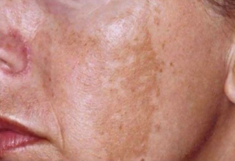 第二个就是“黄”;“黄”代表着暗黄色素,比如雀斑、黄褐斑、太田痣,痘印肤色不均匀,暗黄,这些都属于“黄”。