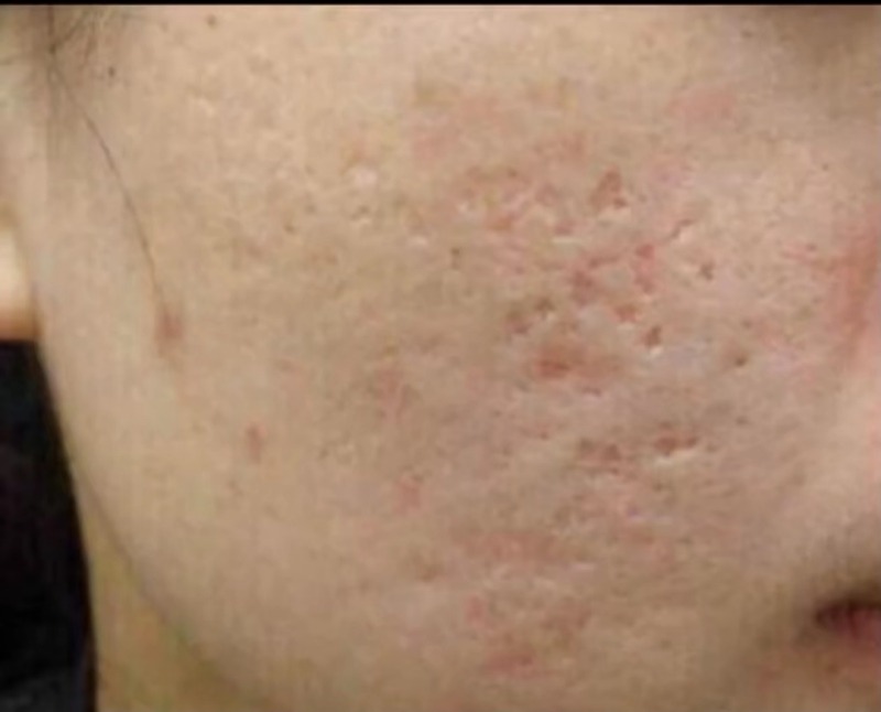 第三个就是“粗”;“粗”代表着毛孔粗大,凹凸不平的痘坑