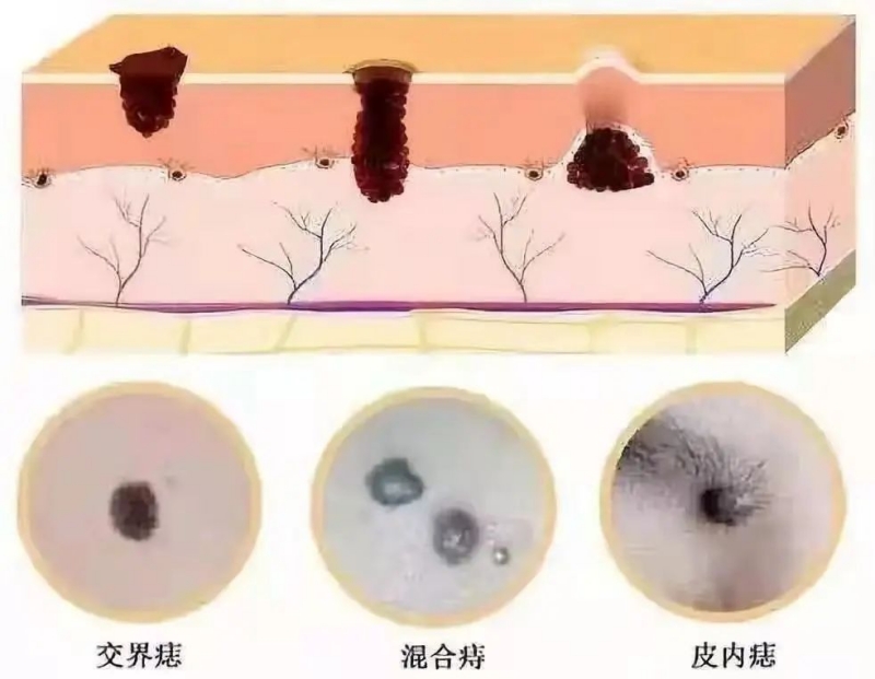 七、有黑色素瘤家族史的:黑色素瘤的发生率比普通人高十或二十倍。这些色素痣建议大家尽早通过皮肤镜识别它,遵医嘱采取不同的治疗手段。